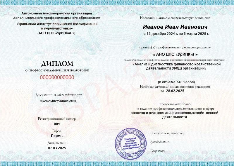 Курс обучения Анализ и диагностика финансово-хозяйственной деятельности (ФХД) организации (340ч)