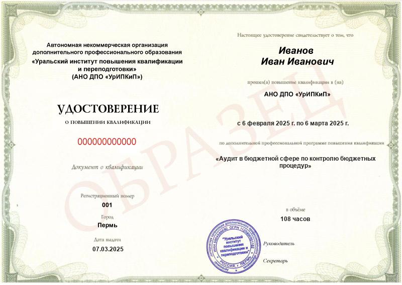 - Образец удостоверения о повышении квалификации.