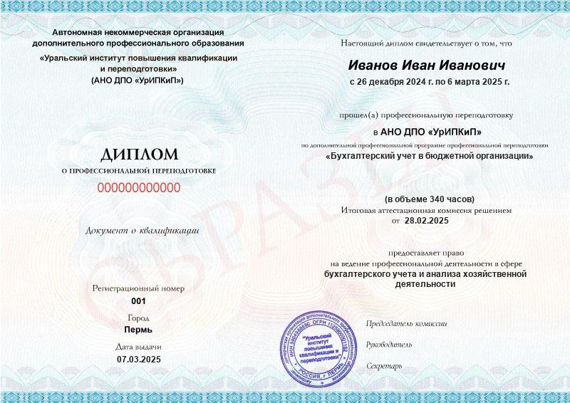 - Образец диплома о профессиональной переподготовке.