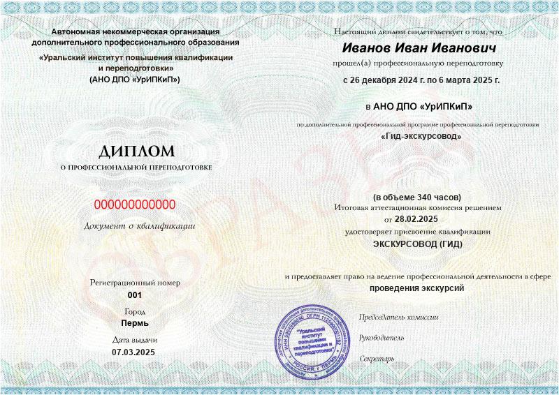 Да, дипломы и удостоверения оформляются в соответствии с действующим законодательством РФ. Документы печатаются на специальных бланках, заверяются печатью АНО ДПО «УрИПКиП».