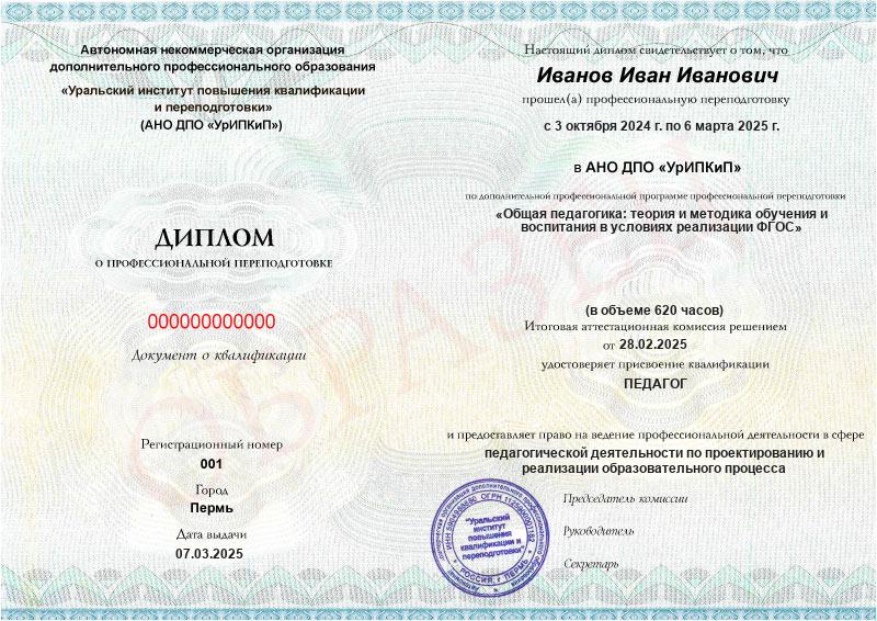 - Образец диплома о профессиональной переподготовке.