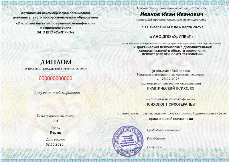 Практическая психология с дополнительной специализацией в области применения психотерапевтических технологий (1840ч)