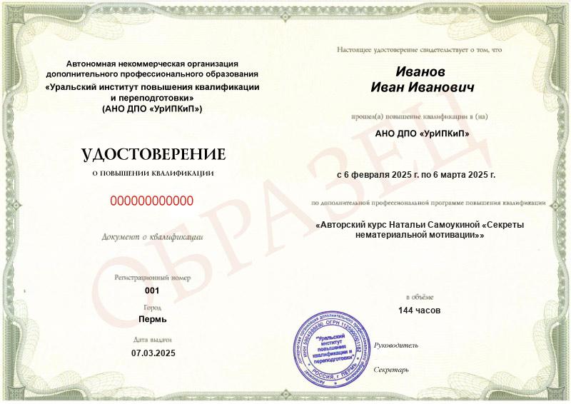 Обзор программы повышения квалификации «Авторский курс Натальи Самоукиной «Секреты нематериальной мотивации»»