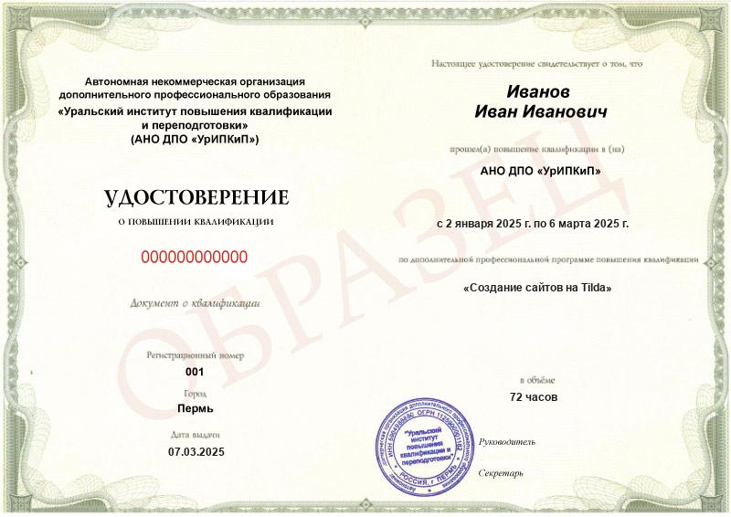 • Повышали квалификацию в АНО ДПО «УрИПКиП» – вам будет выдано удостоверение.
